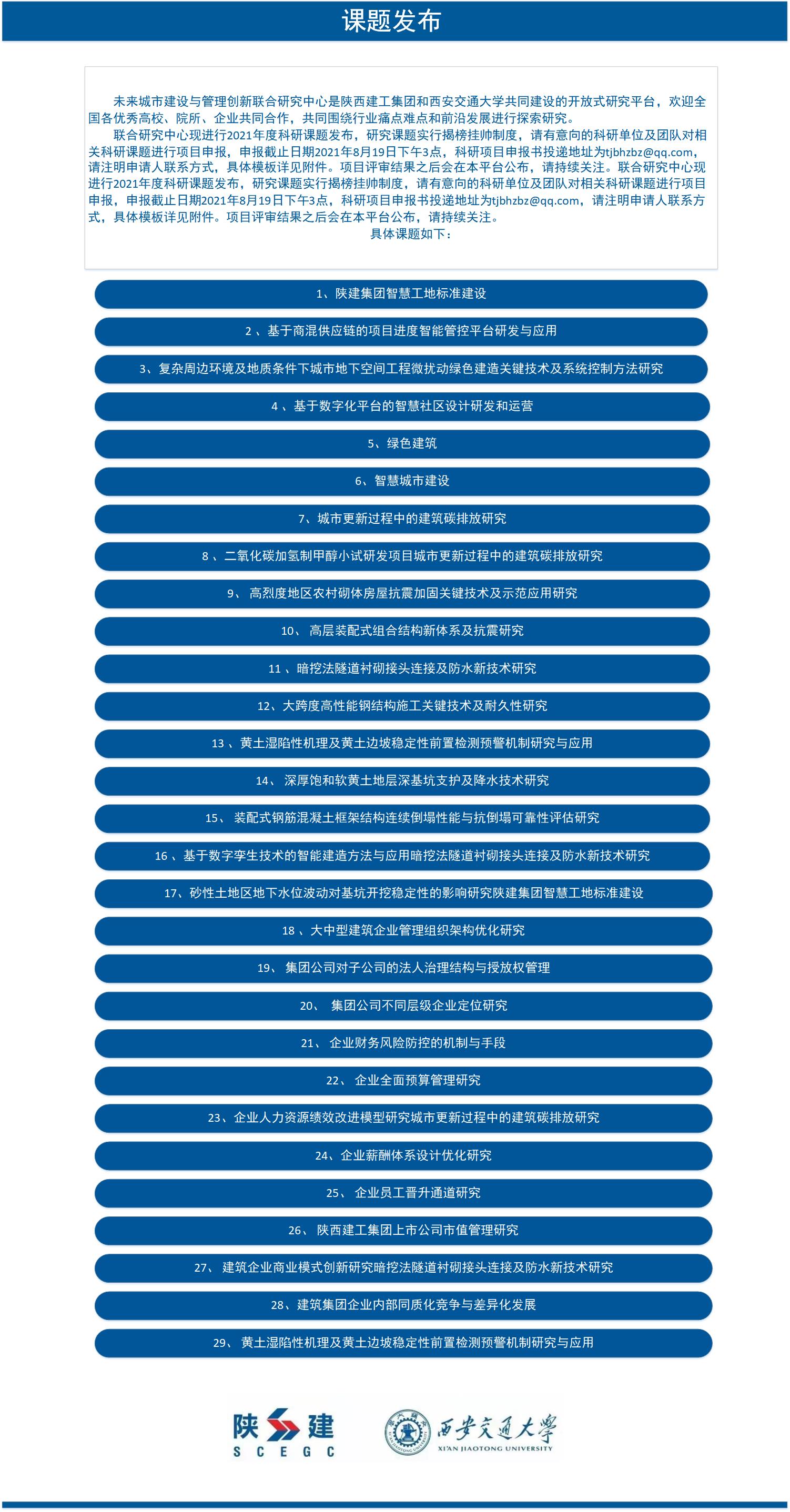 未来城市建设与管理创新联合研究中心2021年度科技课题发布