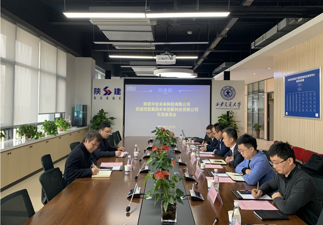 11月5日上午,长安大学教授、陕西中安未来科技有限公司总经理李登峰、中安未来科技有限公司副总经理杨立辉赴秦创原陕建未来城市创新科技公司交流座谈,陕建控股集团科技创新部经理、未来城市创新科技公司董事长时炜出席座谈并讲话,陕建控股集团科技创新部智建主管蒲靖主持会议。